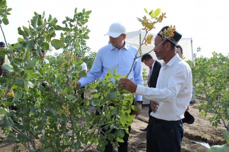 19 июн, раиси вилояти Хатлон Давлаталӣ Саид дар деҳаи Истиқлоли ҷамоати деҳоти Зафари ноҳияи Фархор бо нашъунамои боғи писта дар хоҷагии деҳқонии “Абдуҷаббор” шинос шуданд.