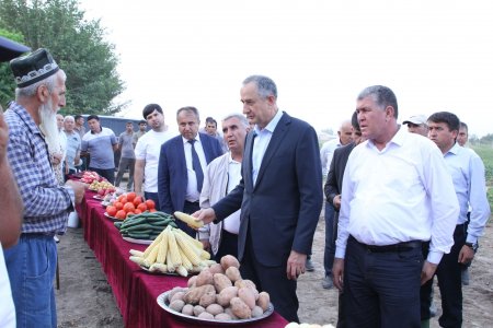 19 июн, раиси вилояти Хатлон Давлаталӣ Саид дар ҷамоати деҳоти Тугараки ноҳияи Восеъ аз рафти ҷамъоварии ҳосили пиёз, картошка, сабзӣ ва нашъунамои