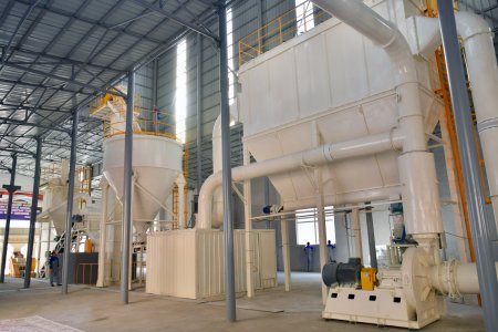 Корхона дар асоси ашёи хоми маҳаллӣ фаъолият менамояд. Он дар назди захираи бузурги санги мармари сафед, ки микрокалсит аз он омода мегардад, бунёд ёфтааст.