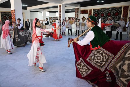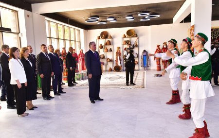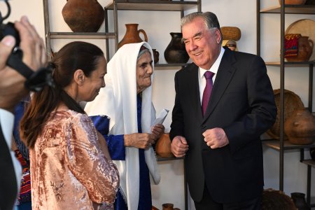 Аснои боздид дар пешайвони бинои муосир ба Пешвои миллат муҳтарам Эмомалӣ Раҳмон намунаи ҳунарҳои мардумӣ муаррифӣ гардид.