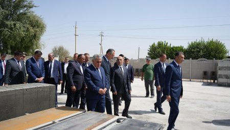 Имрӯз, 12 апрел, зимни сафари корӣ раиси вилояти Хатлон Давлаталӣ Саид дар ноҳияи Ёвон аз рафти корҳои сохтмонии хатти нави истеҳсоли амстронг дар
