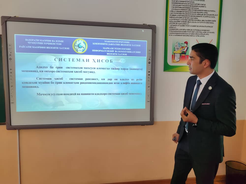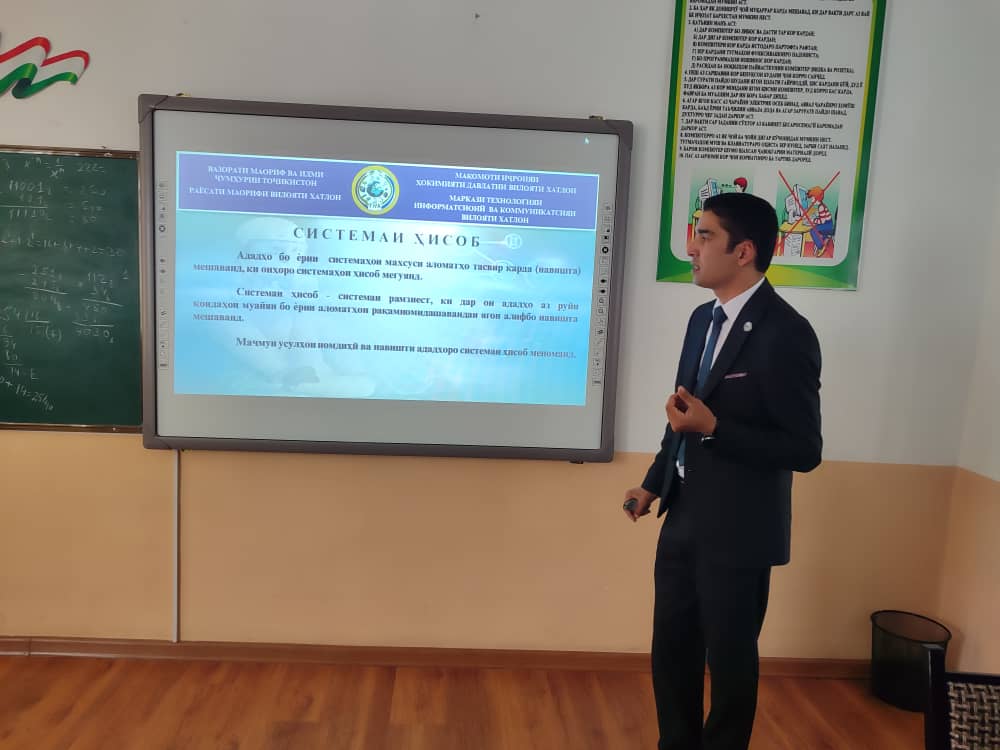 Бо мақсади иҷрои қарори раиси вилояти Хатлон аз 9 ноябри соли 2022, №333 ҷиҳати татбиқи қарори Ҳукумати Ҷумҳурии Тоҷикистон аз 31 августи соли 2022, №439 «Дар бораи Консепсияи гузариш ба таҳсилоти рақамӣ дар Ҷумҳурии Тоҷикистон барои давраи то соли 2042» ва нақша чорабинии Маркази технологияи информатсионӣ ва коммуникатсияи мақомоти иҷроияи ҳокимияти давлатии вилояти Хатлон, барои такмил додани маҳорати касбии омӯзгорон семинар омӯзиш дар мавзуи "Истифодаи самараноки технологияи муосир, видеопроектор ва тахтаи электронӣ дар раванди таълим",бо омузгорони фанҳои дақиқи муассисаҳои таҳсилоти миёнаи умумӣ инчунин расонидани ёрии методӣ ба омӯзгорони ҷавон оид ба мавзӯҳои нав дар китобҳои дарсии фанни технологияи иттилоотӣ дар муассисаи таҳсилоти миёнаи умумии №56-и ноҳияи Вахш баргузор гардид.