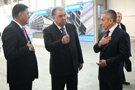 Имрӯз, 12 апрел, зимни сафари корӣ раиси вилояти Хатлон Давлаталӣ Саид дар ноҳияи Ёвон аз рафти корҳои сохтмонии хатти нави истеҳсоли амстронг дар